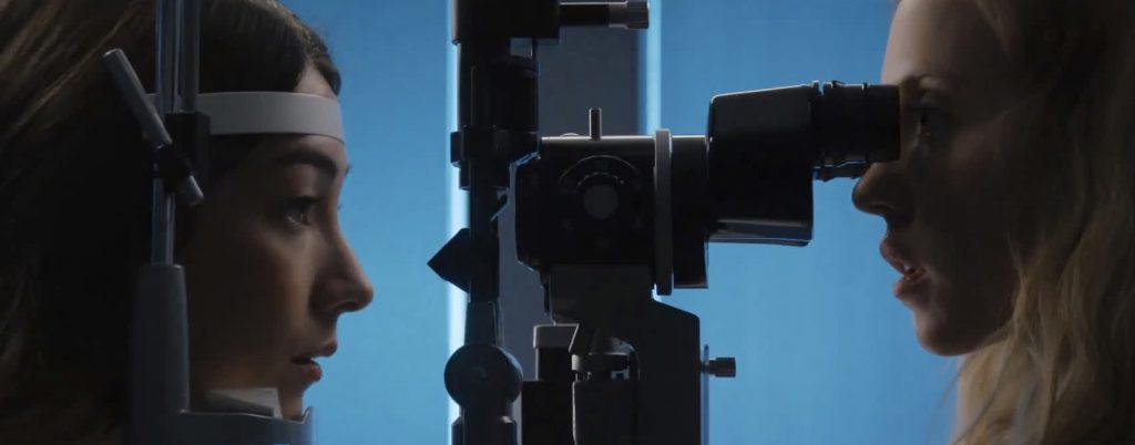 ВПЕЧАТЛЕНИЯ И АКТЕРЫ: перебравшись в просторный лофт, который 20-летние могут себе позволить только в фильмах, офтальмолог Пиппа (Сидни Суини) и ее бойфренд Томас (повзрослевший Джастис Смит из фильма «Покемоны. Детектив Пикачу») - парочка восторженных голубков, чьи отношения становятся все более извращенными, когда они начинают шпионить за красивым фотографом и его очаровательной моделью-женой в квартире через дорогу. Поскольку Томас из тех серьезных и хороших парней, которые засыпают до того, как его девушка выходит из ванной в сексуальном нижнем белье, это лишь вопрос времени, когда увлечение Пиппы Себом (Бен Харди) и Джулией (Наташа Лю Бордиццо) превратится в навязчивую идею. Она покупает бинокль, а затем в квартире незнакомцев устанавливается скрытое устройство для прослушивания (которое включает в себя лазеры, работающие на вибрации окон). То, что начинается как эротическое онлайн-развлечение, превращается в триллер благодаря ухищрениям сценариста-режиссера. Джулия появляется в клинике Пиппы, приглашает ее на кофе, а затем ведет в спа-салон, где без комплексов открывается (и раздевается) перед ней. Зная, что Себ - двуличный изменщик, Пиппа решает более активно вмешиваться в отношения, которые ее не касаются, что приводит к вроде бы очевидной трагедии (Джулия кончает жизнь самоубийством), а затем к конфликту между Пиппой и Томасом. Все это время Мохан чередует крупные съёмки глаз в клинике и столь же крупные планы вареных яиц, которые Пиппа разрезает пополам за обедом. Эти символические изображения, взятые прямиком из «Андалузского пса» Луиса Бунюэля, призваны подчеркнуть потенциальную опасность наблюдения за чужой жизнью.