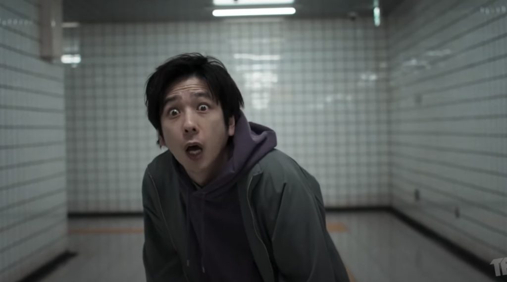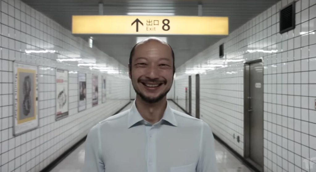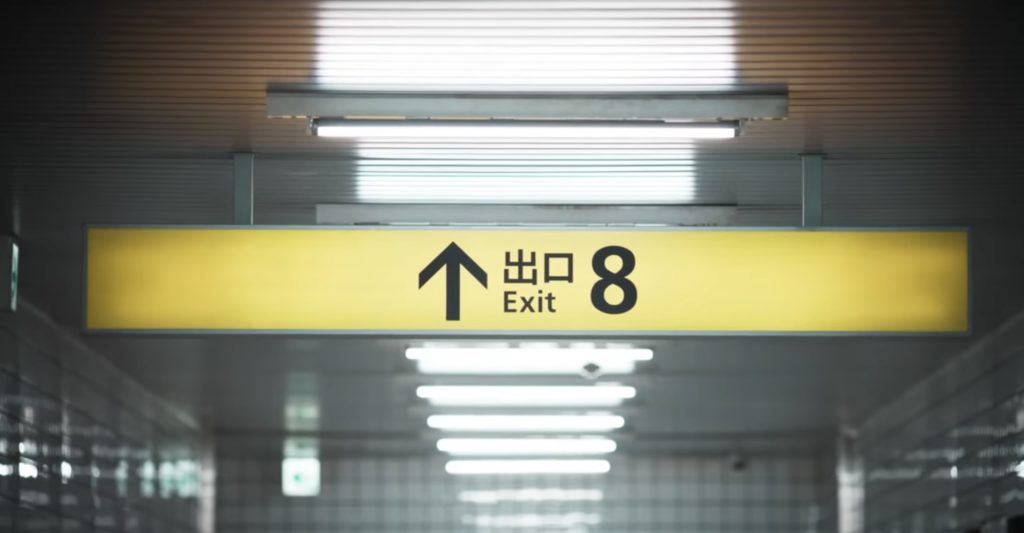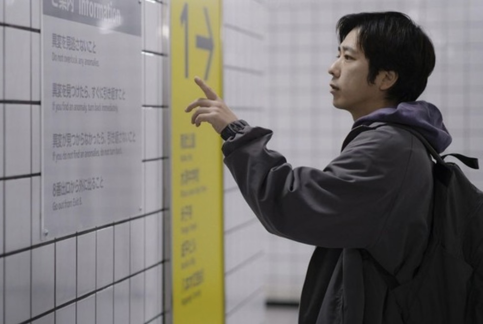 ВПЕЧАТЛЕНИЯ И АКТЕРЫ: пассажир метро (его играет участник популярного бой-бэнда Arashi Кадзунари Ниномия) оказывается запертым в его бесконечно петляющих переходах, ошеломленно блуждая и все время возвращаясь в одну и ту же точку. Пленка в проекторе словно движется по кругу. Точно в определенный миг навстречу бесстрастно, как робот, пройдет мимо белорубашечный усач с портфелем (Ямато Коти). Через пару минут мы и сами уже узнаем один и тот же порядок попадающихся отметин - поворотов, плакатов… Вчитавшись в информационное табло с правилами поведения в этом кафельном аду, герой сообразит, что в поисках ведущего к свободе выхода № 8 ему нужно вглядываться в рекламные постеры, пожарные гидранты, вентиляционные решетки и запертые двери, отмечая отличия - "аномалии". Мерцание глаз на рекламном плакате, приоткрывшуюся дверь, исчезнувшую решетку, перевернувшуюся цифру 8… Заметив минимальные изменения, нужно вернуться к первоначальной точке, иначе указатель направления к выходам вновь обнулится.