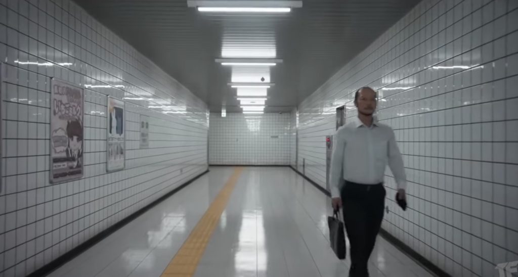 Метро не раз служило кинематографистам подобием метафоры каких-то жизненных ситуаций - вспомним аргентинский "Мебиус", где набитый пассажирами состав вдруг исчезает в таких же бесконечных, как кошмар, туннелях. В конце 90-х был и у нас снят короткометражный фэнтези "Лист Мебиуса" о бесследно пропавшем поезде метро. Образ "ленты Мебиуса" появляется и в новом японском фильме: ее очертания напоминает рекламный плакат на стене, в который напряженно всматривается герой. В этом кино вообще много отсылок к расхожим образам, включая атмосферу холодного, стерильного ужаса и ключевые сцены фильма Стэнли Кубрика "Сияние" - в сюрреалистическом эпизоде кошмарных видений героя.