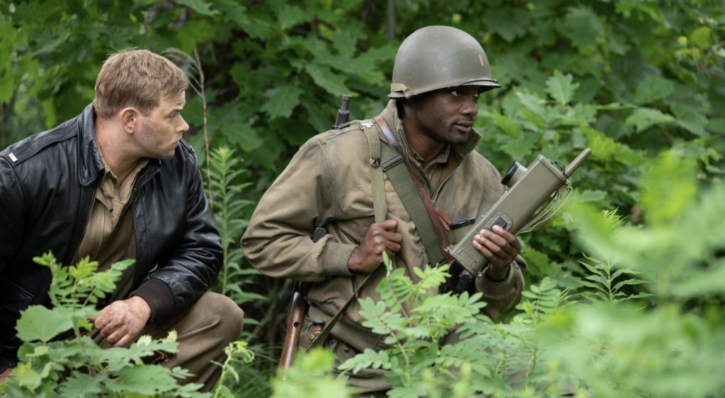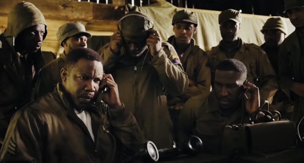 Забавно, но в практически короткометражном фильме Стивена Люка (всего 85 минут) непосредственно миссия по спасению пилота Росса и командира саперов Хейса, начинается, когда пролетают две трети картины. Достаточно длинная экспозиция должна показать ужасный расизм, процветавший в армии США во Второй Мировой войне. Нехорошие белые офицеры плохо относятся к чернокожему Хейсу и чуть ли не нарочно посылают его отряд в самое опасное место, а затем его же обвиняют в головотяпстве. Затем зрители в подробностях увидят как друг Хейса, Рэд (Майкл Джей Уайт), готовит отряд по спасению своего командира - получение боеприпасов, а также инструктаж, выглядят как учебный фильм для офицеров. Как ни странно, взаимоотношениям белого Фрэнка Росса и черного Роберта Хейса уделяется совсем немного времени - они как-то сразу,после пары недоразумений, находят общий язык.