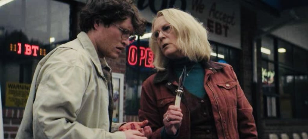 О ЧЕМ КИНО: в 1978 году юная Лори Строуд (Джейми Ли Кертис) впервые встретила маньяка Майкла Майерса, который с тех пор время от времени терроризирует город Хэддонфилд. В наше время пожилая Лори проживает в пригороде со своей внучкой Эллисон (Энди Мэтичак), которая также не избежала встречи с маньяком. Лори очень обеспокоена тем, что Эллисон встречается с Кори Каннингемом (Роэн Кэмпбелл). И проблема даже не в том, что его ошибочно обвинили в смерти ребёнка, за которым он приглядывал. В глазах парня сверкают бесовские искры маньяка Майка Майерса…