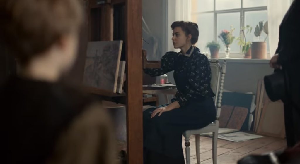 ВПЕЧАТЛЕНИЯ И АКТЕРЫ: хотя шведская художница Хильма аф Клинт не собиралась продавать свои полотна, знаковая выставка 2013 года поразила любителей живописи Стокгольма, а затем жителей семи других европейских городов и Нью-Йорка. Наверняка, ее наследники удумали что-то сделать в коммерческом плане - ведь скромная выставка в Лос-Анджелесе в 1986 году сенсацией не стала. Как не стал сенсацией и документальный фильм Beyond the Visible режиссера Галины Дыршка. Теперь в дело вступает «тяжелая артиллерия» в лице знаменитого режиссера Лассе Халльстрема («Шоколад», «Правила виноделов», «Пряности и страсти»). Англоязычная драма (Халльстрем не смог найти финансирование для фильма о шведской художнице на ее родном языке) - это своего рода семейное предприятие. Жена режиссера, актриса Лена Олин, убедила его взяться за работу и сыграла Хильму в старости. Более того, в главной роли - их дочь, Тора Халльстрём. Тора в детском возрасте пару раз появилась в эпизодах, но до «Хильмы» работала в сфере финансов.