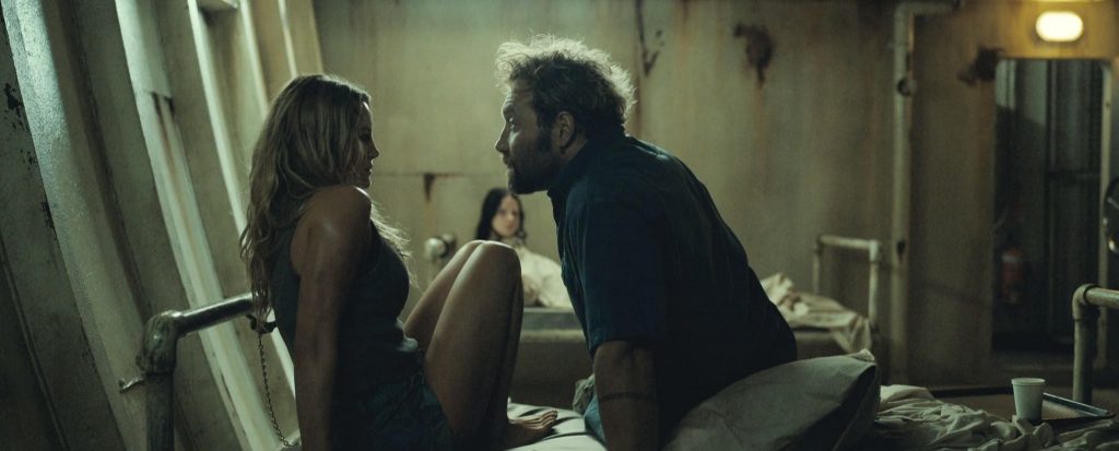 ВПЕЧАТЛЕНИЯ И АКТЕРЫ: сюжет «Хищных тварей» вращается вокруг вполне себе безумной идеи. Это, конечно, прекрасный триллер, который становится лучше по мере того, как фильм находит способы расширить и обострить свои несколько ограниченные локации и ставки. Но, скорее всего, единственное, что запомнят зрители в фильме режиссера Шона Бирна, - это его злодей. И вовсе не из-за того, кем является Брюс Такер (Джай Кортни). По сути, он серийный убийца с комплексом бога, дурной привычкой шутить в смертельных ситуациях, которые он сам же придумал, и банальной сценой, в которой он танцует в некотором состоянии раздетым. Это персонаж, для которого меньше, безусловно, было бы лучше, как с точки зрения сценария, так и с точки зрения игры актера, потому что ни одна из этих деталей об этом человеке не сравнится с совершенно извращенным способом, которым он предпочитает убивать своих жертв. Он скармливает их живым акулам...