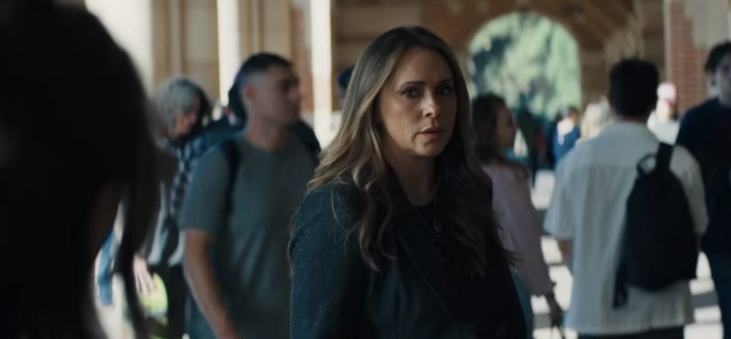 Режиссерка Дженн Робинсон вдохновляется фильмами «Крик» и «Тела, тела, тела», и у неё появляется один необычный персонаж - бисексуальная ведущая подкаста ужасов, которую играет музыкант и модель Гэбриетт Бехтель. Фильм построен на желании зрителей увидеть убийцу без маски, что выводит его за рамки мифологического уровня, свойственного многим слэшерам (он не носит маску, но его лицо всегда находится в тени.) Понравилось, что режиссерка пыталась сделать из всего этого настоящее кино. Но это не настоящее кино. Это выдумка, пародирующая его. Тем не менее, Робинсон включает в свой фильм трёх звёзд оригинальной франшизы, и это не просто случайные камео. Дженнифер Лав Хьюитт возвращается в роли Джули Джеймс, духовно травмированной профессорши юридического факультета. Фредди Принц-мл. играет владельца местного бара Рэя Бронсона, который таит в себе затаённую обиду (с седыми волосами Принц выглядит гораздо интереснее, чем прежде). А Сара Мишель Геллар появляется в сцене сна, сохраняя при этом свою странно узнаваемую надменность….