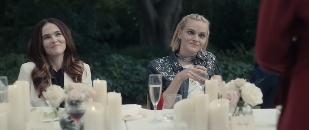 «Юбилей» - любопытное явление. Это откровенно политический фильм, который не спешит выражать собственные политические взгляды. Общие черты сюжета, и даже некоторые из эпизодов напоминают сериал «Рассказ служанки», в котором авторитарный режим пришёл к власти в США благодаря скандальной книге. Отличие «Юбилея» заключается в том, что нам так и не дают понять, за что именно выступает книга под названием «Перемена». Всё, что мы узнаём, - это то, что движение Лиз антидемократично, и она туманно упоминает о важности американских «традиций». Видение будущего в «Рассказе служанки» пугает, потому что оно основано на предрассудках и социальных структурах, существующих сейчас, и оно точно описывает, как эти силы могут быть использованы в качестве оружия, чтобы убедить миллионы американцев добровольно отказаться от демократии, одновременно подавляя тех, кто не хочет этого делать. Объяснение в «Юбилее» того, почему США добровольно превратились в однопартийное государство, по сути сводится к тому, что «какая-то леди написала действительно убедительную книгу». В какой-то момент девушка Анны, Джемма (Флавия Уотсон), благодарит Лиз за написание романа «Перемена», клянясь, что он спас ей жизнь и отношения с родителями. Этот момент задуман как провокационный, чтобы представить людей, превращающих США в гипернационалистическое полицейское государство, как дружественных ЛГБТК+. Но на самом деле он просто сомнителен, оторван от любой мыслимой политической реальности. В «Перемене» просто нет ничего, что могло бы объяснить размахивающее флагами, одержимое своим наследием, яростно фашистское движение, которое положительно воспринимается квир-людьми.