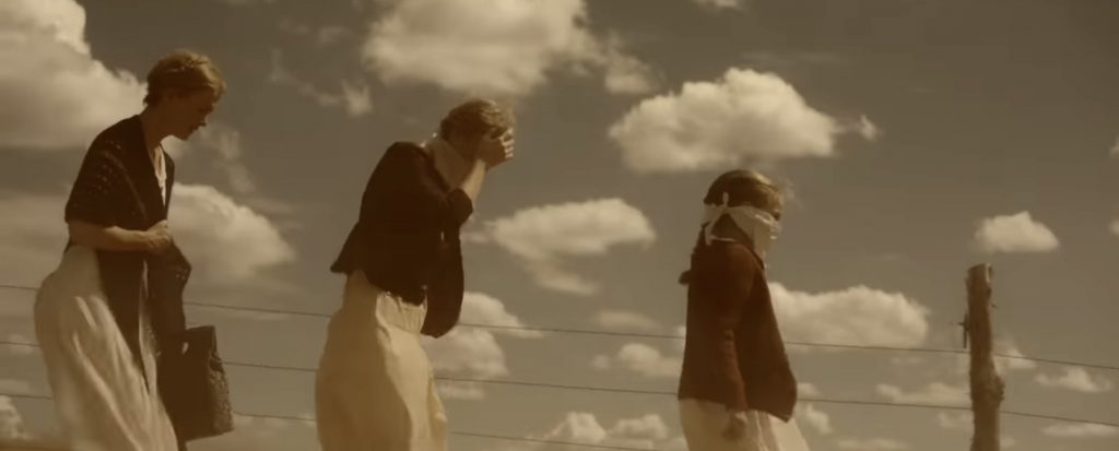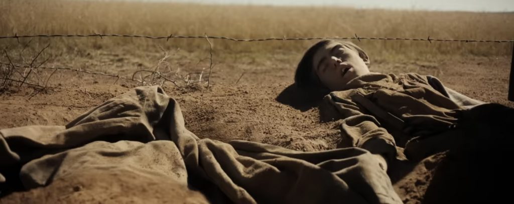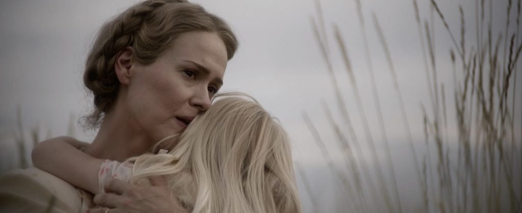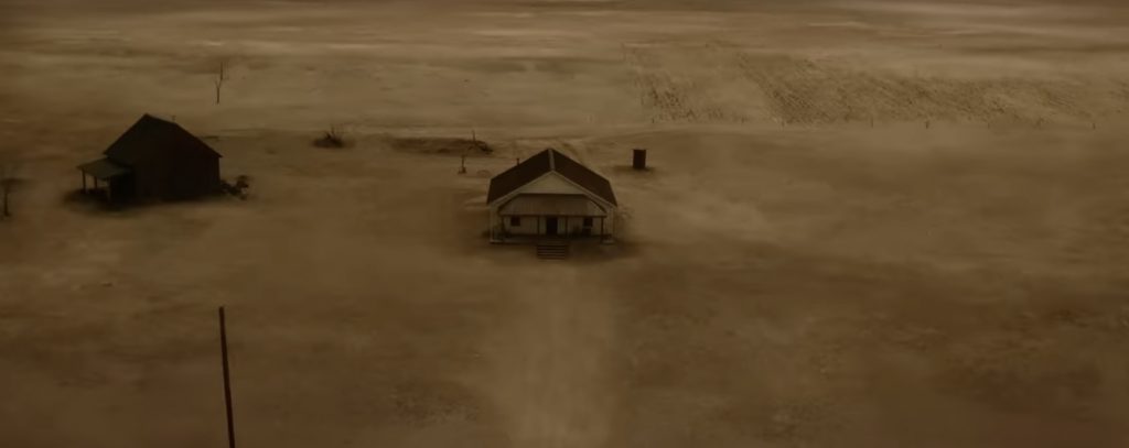 О ЧЕМ КИНО: Оклахома, 1933 год. США и Канада находятся в эпицентре пыльных бурь, названных «Пыльным котлом». Поселенка Маргарет (Сара Полсон) в одиночку ведёт хозяйство на ферме, воспитывает дочерей Роуз (Амайя Миллер) и Олли (Алона Роббинс), ждёт возвращения мужа с Севера. Героиня потеряла третьего ребёнка после скарлатины и теперь делает всё, чтобы обезопасить своих близких от любой угрозы. Смерть приходит в лице жуткого Серого Человека — духа со страниц детской книги, начинающего преследовать семью. Добавляет стресса женщинам незнакомец Уоллес (Эбон Мосс-Бакрак), исцеляющий от всех болезней и якобы лично знающий отца семейства. Героини фильма полностью отрезаны от мира. Из хобби остаётся чтение книг и вязание крючком (последнее станет ключевым и крайне неприятным элементом в одной из сцен). Уоллес вполне способен заменить девочкам отца, а Маргарет – мужа, но каковы его истинные мотивы и насколько реален этот человек?…