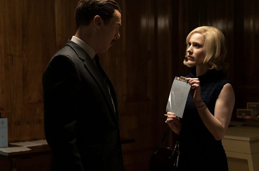 Винн по картине - примерный семьянин, у него верная жена (в этой роли Джесси Бакли, которая, кстати, снималась в таких сериалах, как «Чернобыль» и «Война и мир» - то есть тематически также связанных с Россией) и сын. И вот Винн приезжает в СССР как бизнесмен якобы налаживать торговые связи. В СССР это времена Хрущева, которого довольно самобытно играет актер Владимир Чуприков. Его Хрущев неприятен до невозможности. Советский Союз также симпатии не вызывает. Режиссер показывает людей так, словно шпион из них - каждый. У всех внимательные оценивающие взгляды, будь то администратор в гостинице или прохожий. Есть забавная деталь - Винн останавливается в отеле «Виталий» - трудно себе представить, что такой был на самом деле. То, что в СССР не дают спуску предателям Родины, показано в довольно странном эпизоде - показательный расстрел шпиона Петра Попова, причем так, чтобы другим неповадно было.