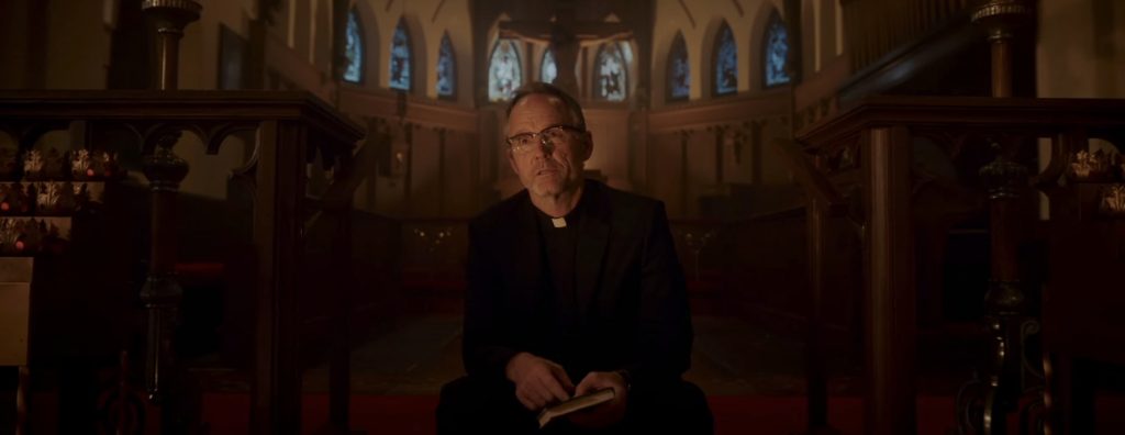 «Жребий» 2024 года дышит в спину ретро-эстетике «Оно» (Гари Доберман писал сценарий к дилогии Энди Мускетти), а цветокоррекцией огней во тьме отчетливо напоминает мир «Доктора Сна» Майка Флэнегана. Здесь отметим, что режиссер продолжения «Сияния», который по праву считается одним из главных по прозе Кинга в кино, в свое время поступил довольно хитро. Его сериал «Полуночная месса», вышедший на Netflix, официально не является экранизаций «Жребия Салема», но негласно ею с почетом считается всеми, кто читал роман. В чем же «Месса» выигрывает, не будучи подстрочником?