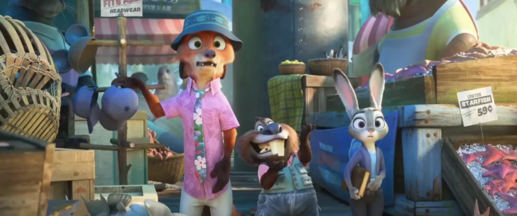 Мир Зверополиса, как и раньше, проработан до мельчайших деталей. Во второй части даже происходит небольшой перегруз. Такое ощущение, что все 9 лет авторы старательно копили шутки, киноцитаты, отсылки и аллюзии и в финальную версию постарались упихать все свои задумки, не оставив ни одной про запас. Ящерица по имени Хесус ходит по воде. Майкл Джей Фокс озвучивает лиса по имени Майкл Джей. Президент совета директоров Disney Боб Айгер появляется в образе персонажа Боба Тайгера. Змей носит поясную сумочку - трогательное напоминание о герое Ке Хюи Куана из «Всё везде и сразу». А еще есть смешной оммаж «Молчанию ягнят», переделка «Рататуя» и блестящая сцена, отсылающая к кубриковскому «Сиянию».