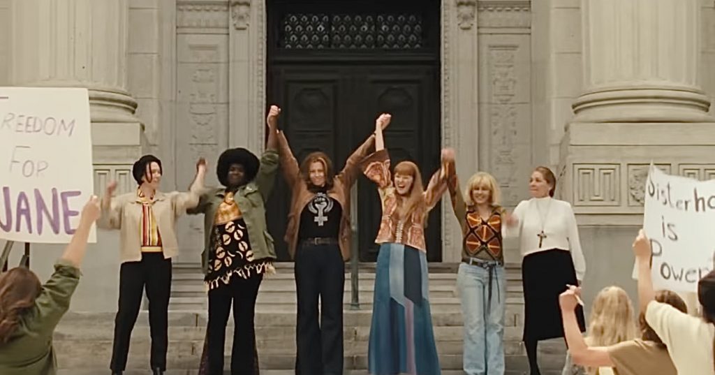О ЧЕМ КИНО: 1968-й недаром назван «годом, когда все началось». Студенты в разных странах мира, в том числе и в США, протестуют на улицах против войны во Вьетнаме, активисты борются за права человека, выступают против расизма и в поддержку феминизма. За арестами на одном из таких митингов из-за спин полицейских наблюдает домохозяйка средних лет по имени Джой (Элизабет Бэнкс). Муж подзывает ее подойти, чтобы пообщаться со знакомыми на светском вечере, но Джой больше влечет то, что происходит вне стен этого роскошного здания. И пока она еще не понимает насколько. Затем она садится с мужем в машину и едет в уютный дом, где всегда пахнет американскими пирогами и печеньем и где родителей ждет 15-летняя дочь Шарлотт. Джой беременна вторым ребенком, и ее беспокоит плохое самочувствие. Осмотр гинеколога показывает, что рождение ребенка может привести к смерти его матери. И это за 5 лет до того, как Верховный суд США признал законность абортов. Так что жизнь Джой легально может спасти либо консилиум из врачей-мужчин, либо заключение психотерапевта о суицидальных настроениях пациентки. Доктора говорят о женщине в третьем лице, будто ее нет рядом, и все голосуют против аборта, фактически выписывая ей смертный приговор, а психотерапевт советует упасть с лестницы, чтобы спровоцировать выкидыш. «Законные» методы Джой отвергает, и тогда ей на глаза попадается объявление «Беременна? Встревожена? Звоните Джейн!». Под этим именем работает группа активисток во главе с сильной и остроумной Вирджинией (Сигурни Уивер), которые помогают женщинам избавиться от нежелательной беременности. (Кстати, никого из них не зовут Джейн.) Молодой врач проводит Джой операцию, а потом Вирджиния вовлекает ее в работу подпольного абортария, с чего начинается ее борьба за права женщин…
