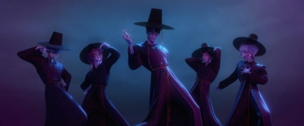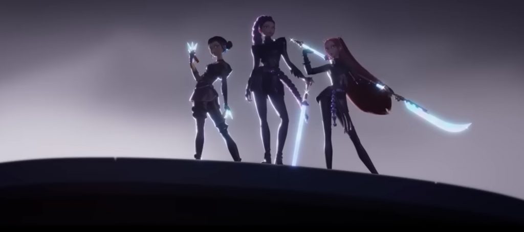 Почему выбор пал именно на кей-поп? Благодарить стоит всю ту же Мэгги Кан (к слову, одну из режиссеров фильма): она неоднократно подчеркивала в различных интервью, какую роль для нее играет происхождение. В религиозных практиках Кореи нередко фигурирует музыка, откуда и пришла идея с защитницами. Ну а кей-поп здесь - просто влияние времени: жанр мог бы быть и иным - это просто закономерная дань популярности.